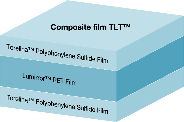 Composite film TLT™ has excellent electrical, heat resistant, and mechanical characteristics, and can be used in areas requiring a higher heat resistance than polyester films.